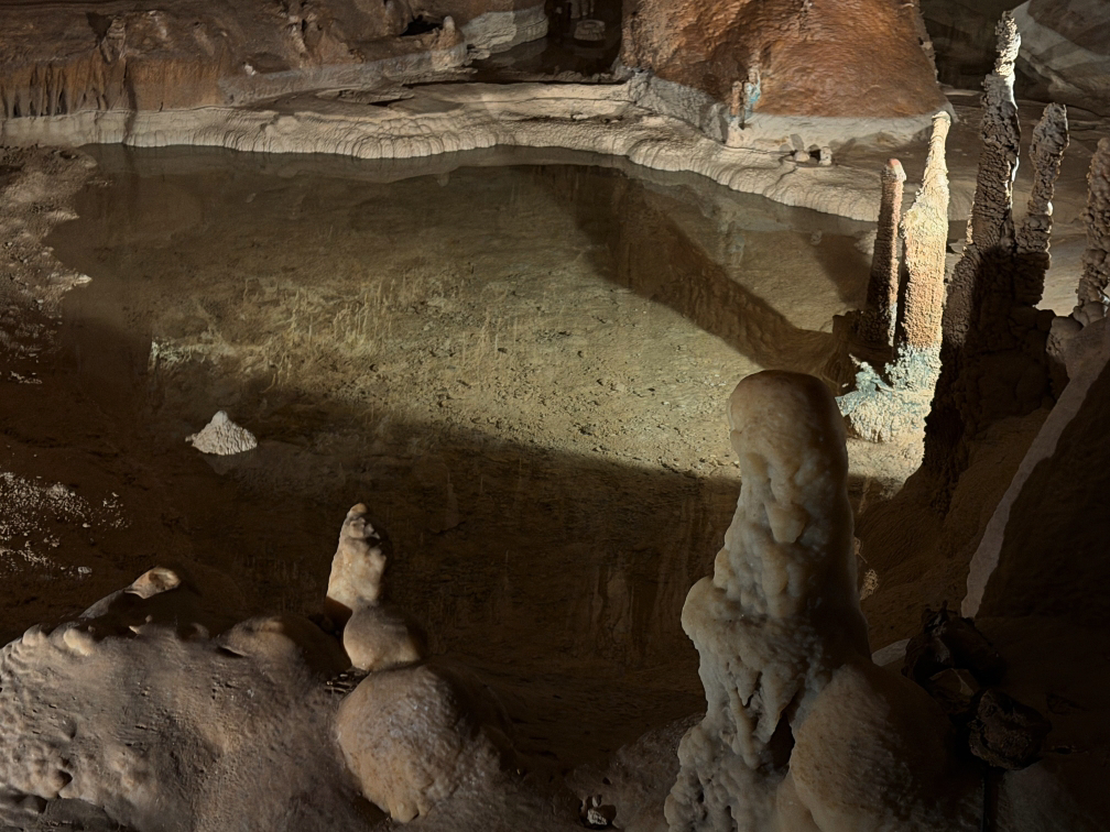 Underground lake room. End of line. Turn back and go out of the cave from here.